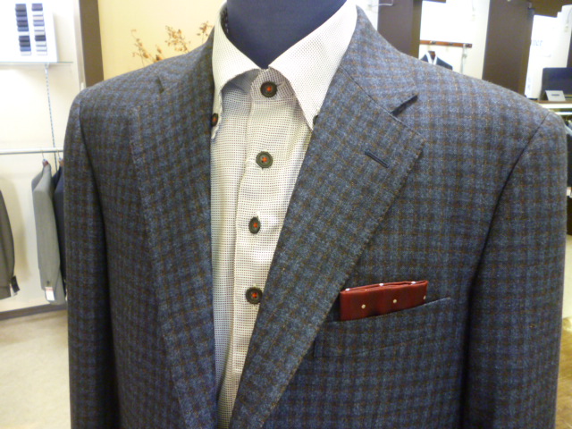 定番の柄ではありますグレンチェック。 クラシカルな古典的ながらですが 流行に左右されずに 着ていただけるのがいいですね。